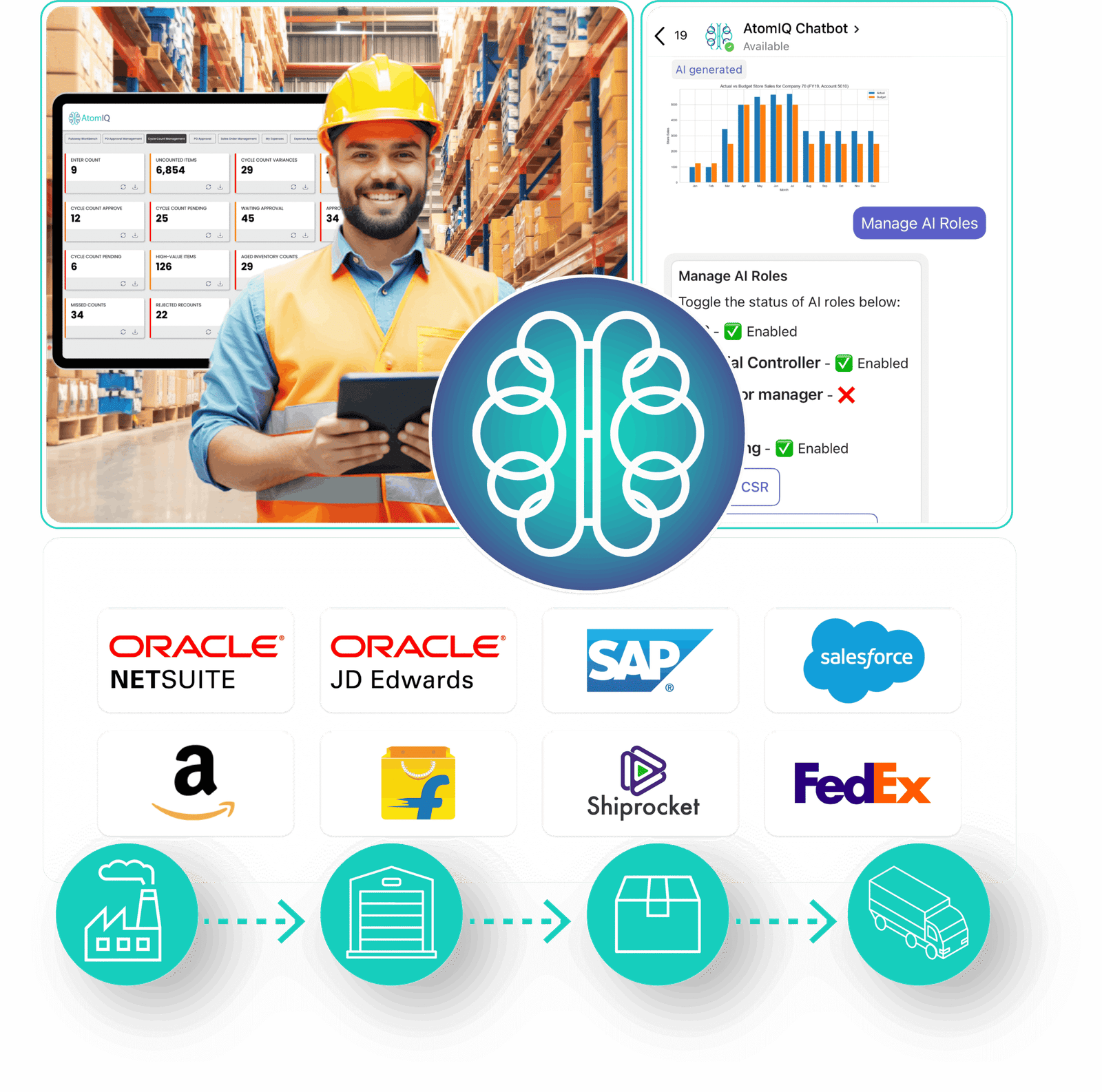 AtomIQ AI Agents bring real-time insights and ERP actions into tools like Microsoft Teams, Slack and web – so teams can approve, resolve, and respond instantly. From purchase approvals to warehouse alerts, decisions happen where work already happens.