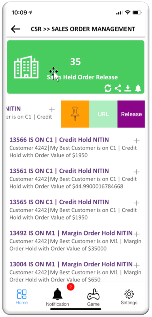 Use AtomIQ mobile App to release held orders without having to login to the web client.